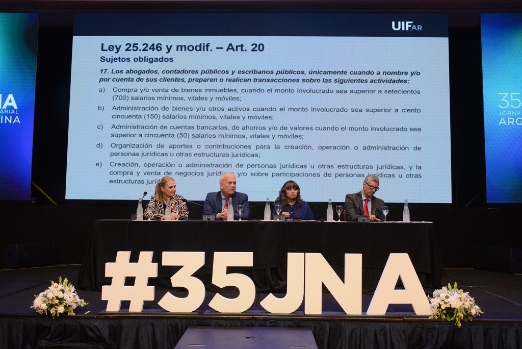 A las 15, la Unidad de Información Financiera ofreció la presentación “Supervisiones de la UIF en el sector de escribanos”, a cargo de Marcelo Borrajo, Subdirector de Análisis Estratégico de la Dirección de Análisis, y Daniela Heredia, Subdirectora de Monitoreo y Evaluación de Riesgo de la Dirección de Supervisión.
