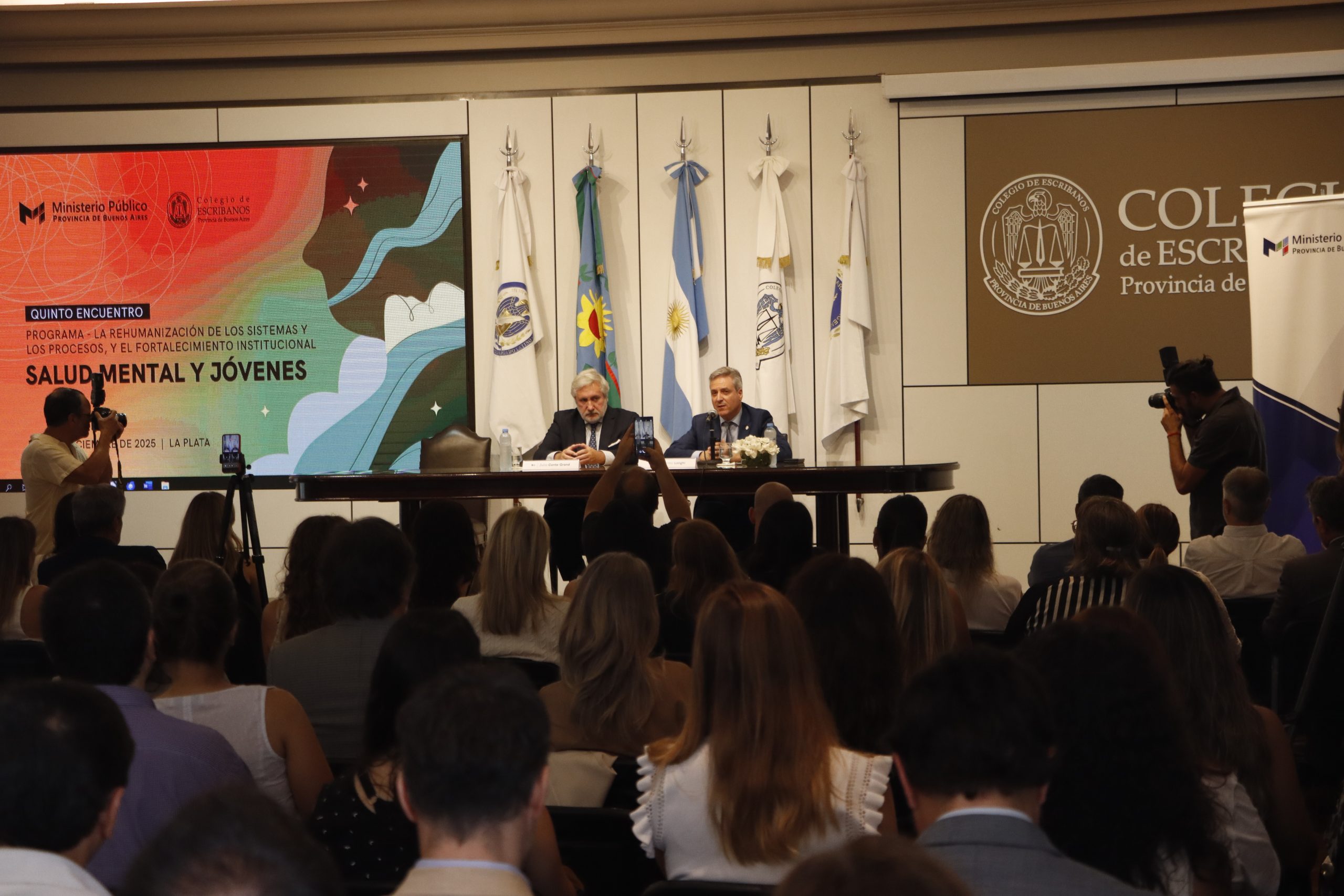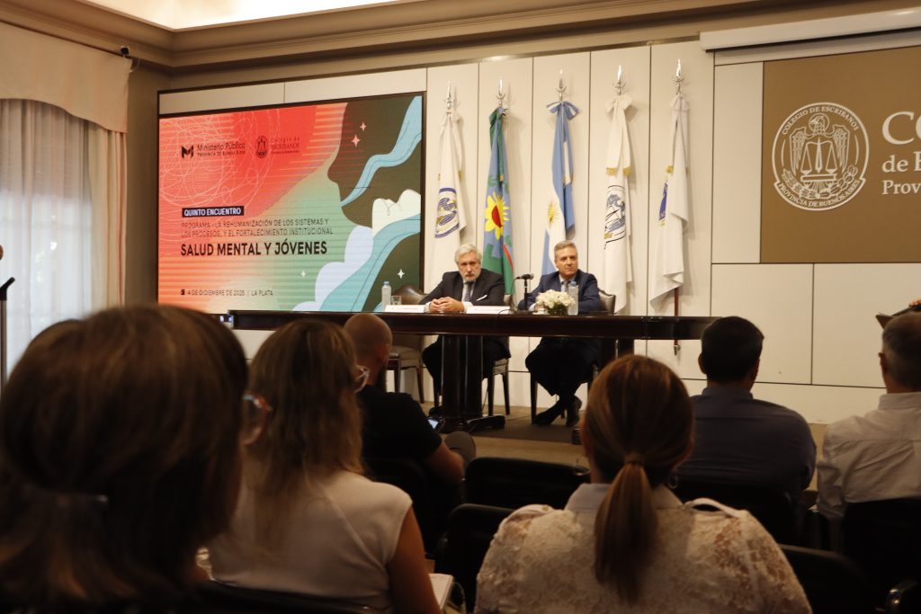 El jueves 4 de diciembre, el Colegio de Escribanos de la Provincia de Buenos Aires recibió a autoridades, especialistas y referentes de diversas instituciones para el 5° Encuentro “La rehumanización de los sistemas y los procesos, y el fortalecimiento institucional”, una jornada centrada en el abordaje integral de la salud mental de adolescentes y jóvenes.