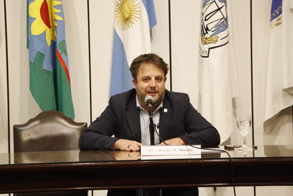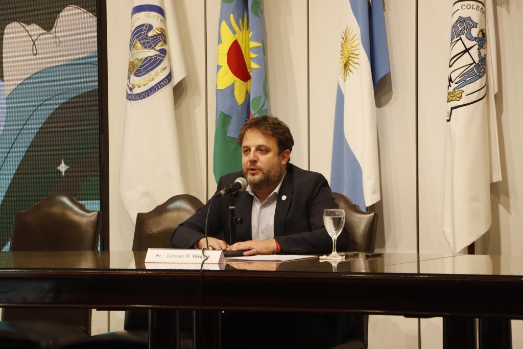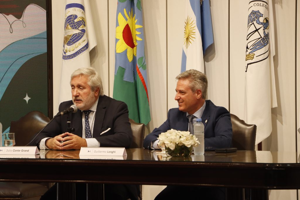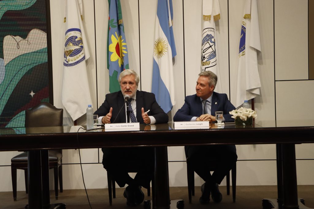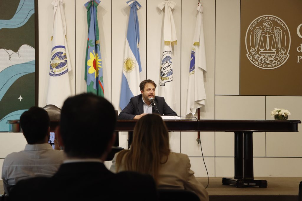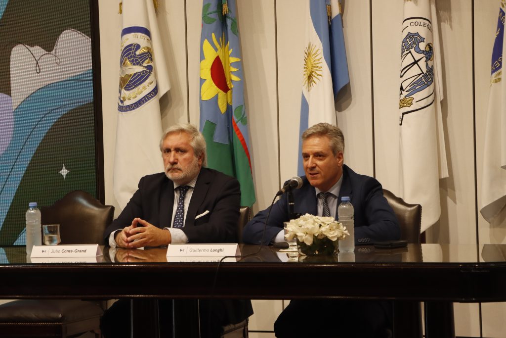 A continuación, hizo uso de la palabra el Procurador General, Julio Conte-Grand, quien agradeció a los presentes y al Colegio de Escribanos por abrir sus puertas a esta iniciativa destinada a fortalecer los lazos institucionales y contribuir a que la provincia crezca en institucionalidad y en la calidad de los servicios públicos.