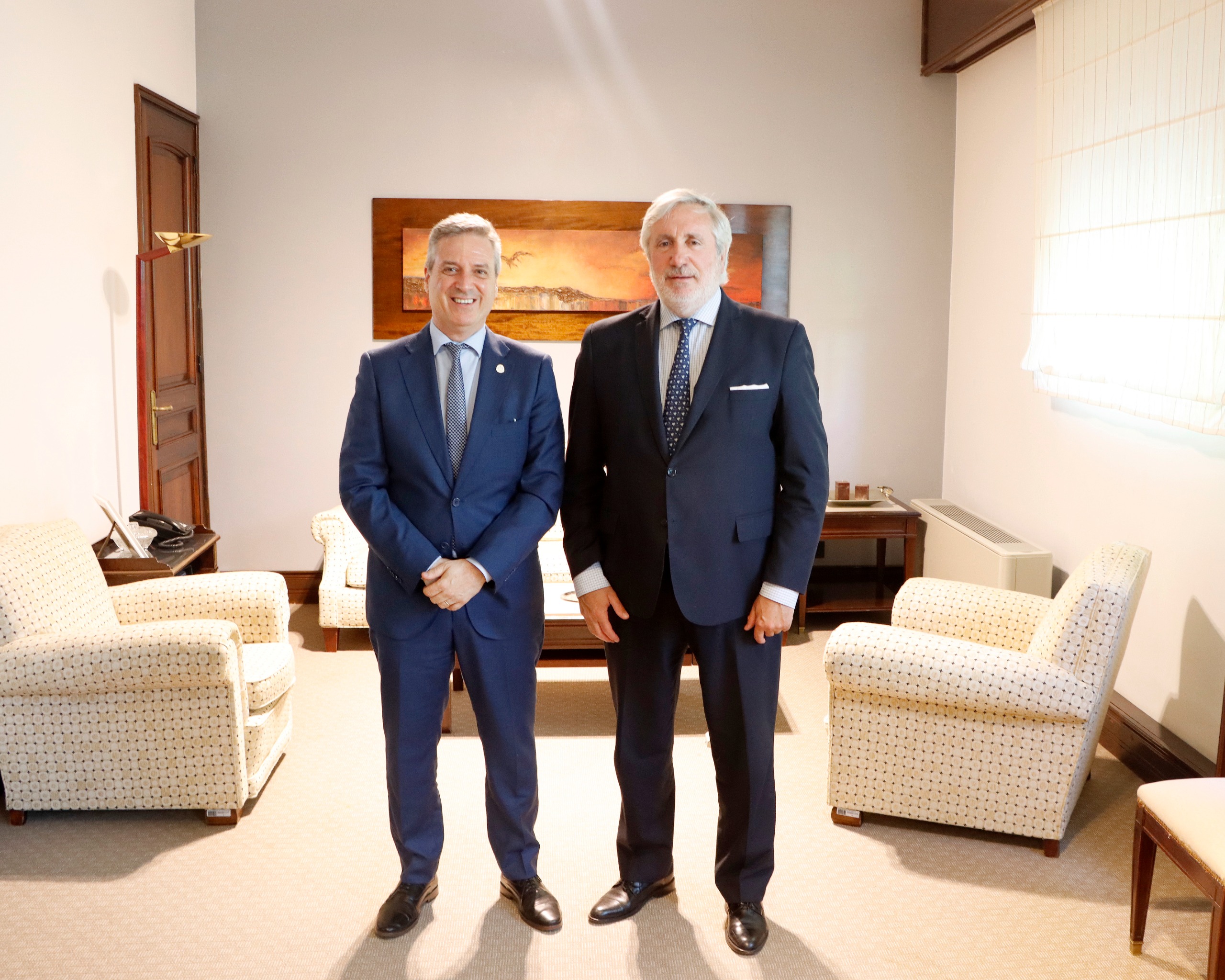 En el marco de la realización del 5° Encuentro “La rehumanización de los sistemas y los procesos, y el fortalecimiento institucional”, el Presidente del Colegio de Escribanos de la Provincia de Buenos Aires, Guillermo Longhi, recibió en su despacho al Procurador General, Julio Conte-Grand, en una reunión institucional previa al inicio de la jornada.