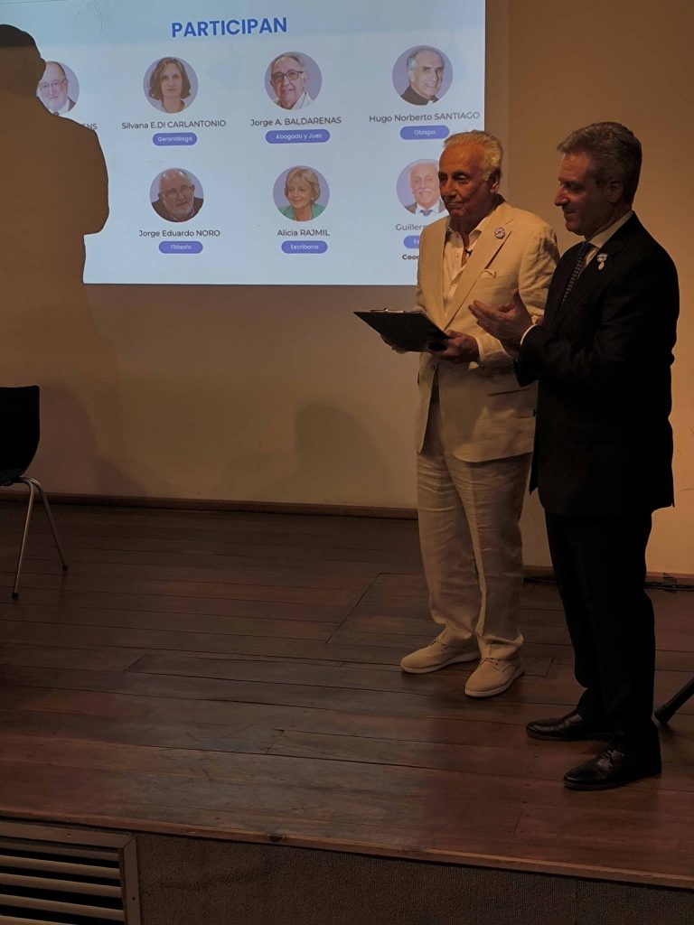 La mesa contó con la participación de destacados referentes: Luis Rogelio Llorens, notario y pionero en el estudio del derecho de autoprotección; Alicia Rajmil, escribana y fundadora del Instituto de Derecho e Integración (IDeI); Silvana Evangelina Di Carlantonio, gerontóloga médica y docente universitaria; Pablo Iugt, rabino y abogado; Jorge A. Baldarenas, abogado, juez y presidente del Hogar Geriátrico San Nicolás – Olga Aseff; Hugo Norberto Santiago, obispo de San Nicolás de los Arroyos; y Jorge Eduardo Noro, filósofo y académico.