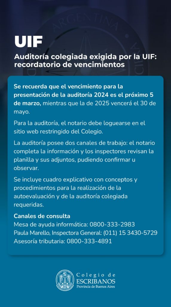 Asimismo, se recordó que el vencimiento de la obligación ante la Unidad de Información Financiera (UIF) operará el próximo 5 de marzo, destacándose la importancia de cumplir en tiempo y forma con las exigencias establecidas.